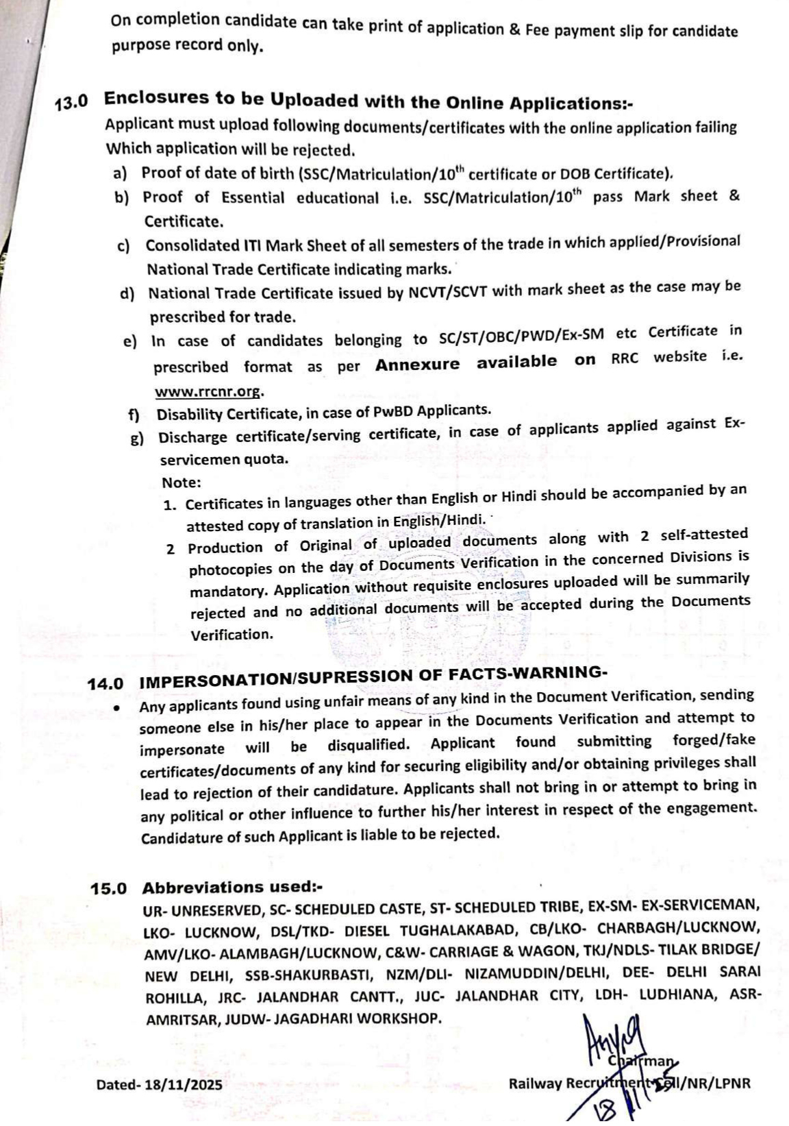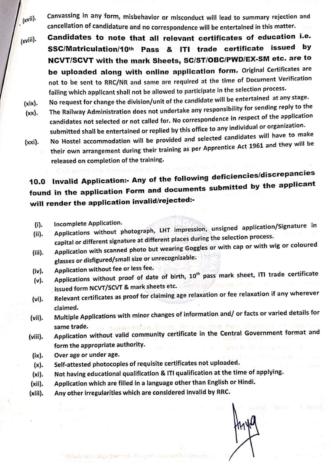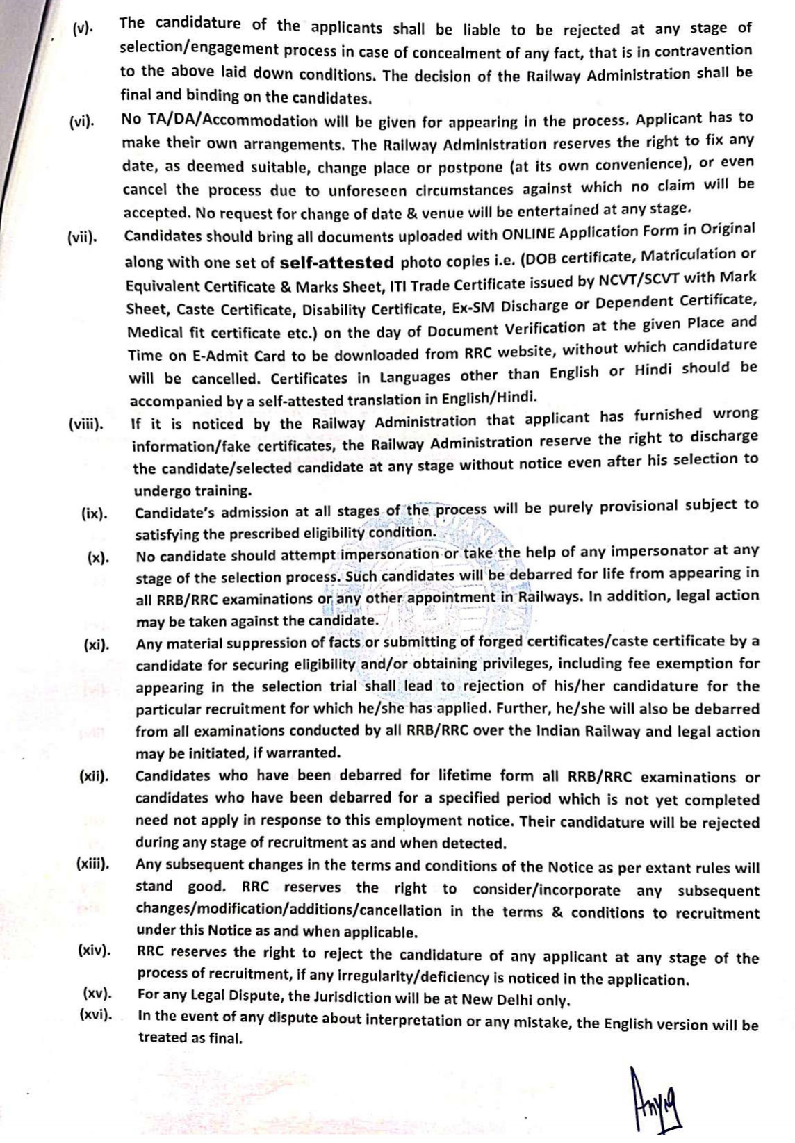 CAUTION : Concealing / falsification / misleading of any information in the Online application may lead to disqualification of the candidature from current and future recruitments of RAILWAY RECRUITMENT CELL (RRC) and the same would also be a criminal offence for which appropriate legal action can be taken.
